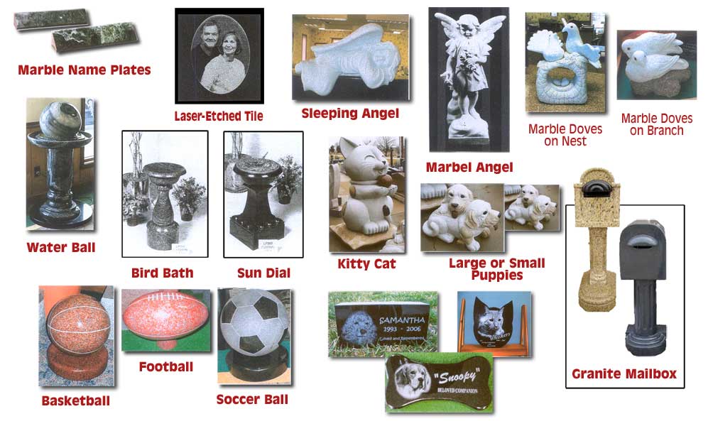 The monuments pictured only represent a few of the monuments we have available. For information on other selections call 1-800-966-6488
