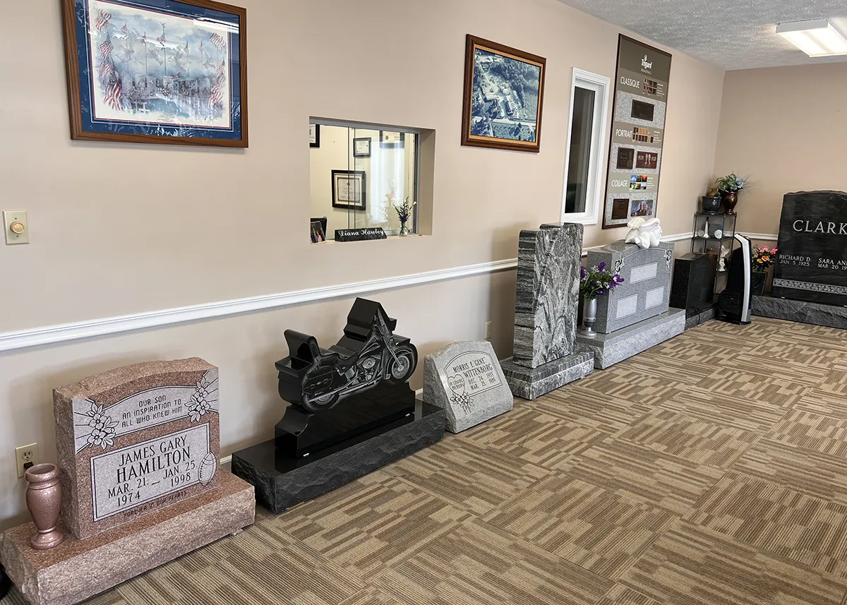 Our wide selection includes granite headstones, cemetery markers, and custom memorials in a variety of granite colors. Every monument is designed, engraved, and finished at our facility, ensuring both craftsmanship and lasting beauty.